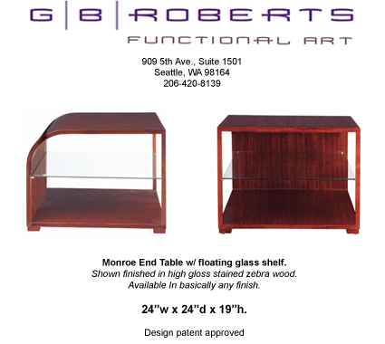 The use of curved surfaces creates this elegant , sensuous "Monroe" collection, consisting of consoles, coffee and end